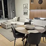 Ubytovanie ponúka vlastné stravovacie zariadenia, ako je plne vybavená kuchyňa a priestor na jedlo pre pohodlie hostí. Reštaurácia Bevanda Tower 115 je približne 300 metrov od tohto apartmánu. Letisko M. R. Štefánika je vzdialené 10 minút jazdy autom a zastávka autobusu Most Apollo je len kúsok pešo od apartmánu.